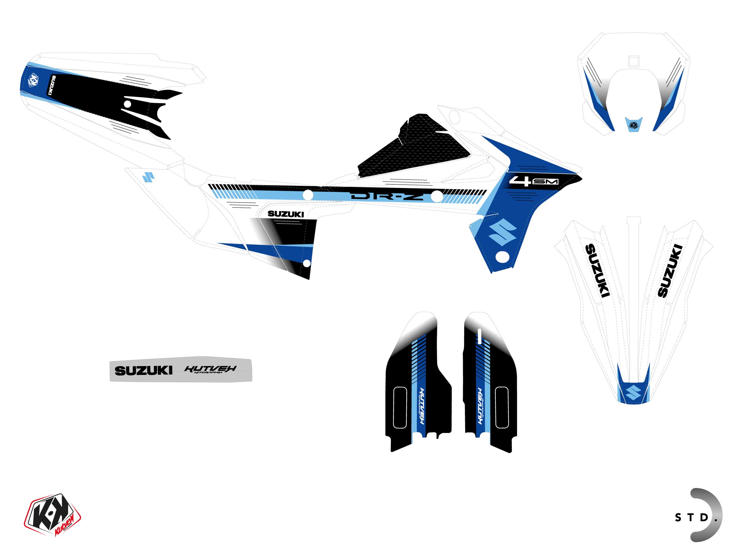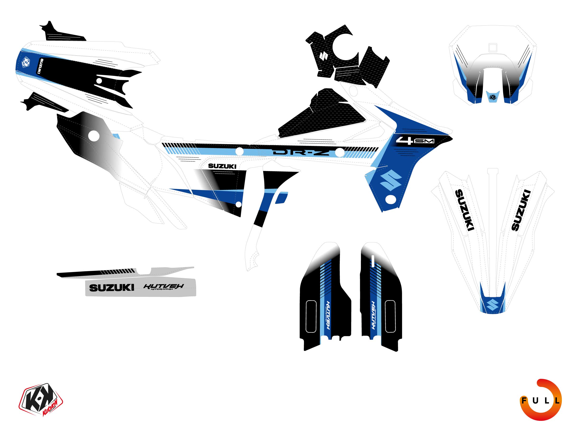 Grâce à ces étapes simples, vous pourrez profiter pleinement de votre kit déco Kutvek, parfaitement ajusté à votre Moto SUZUKI DR-Z 4 SM. Nos kits sont conçus pour être durables et esthétiquement impeccables, tout en restant faciles à poser !